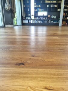 Par ailleurs, nous sélectionnons rigoureusement nos produits de finition : vernis, huiles ou cires, tous certifiés éco-labels. Ces produits, plus respectueux de la planète, garantissent à votre parquet une finition exceptionnelle, révélant la beauté naturelle du bois tout en limitant son impact environnemental.