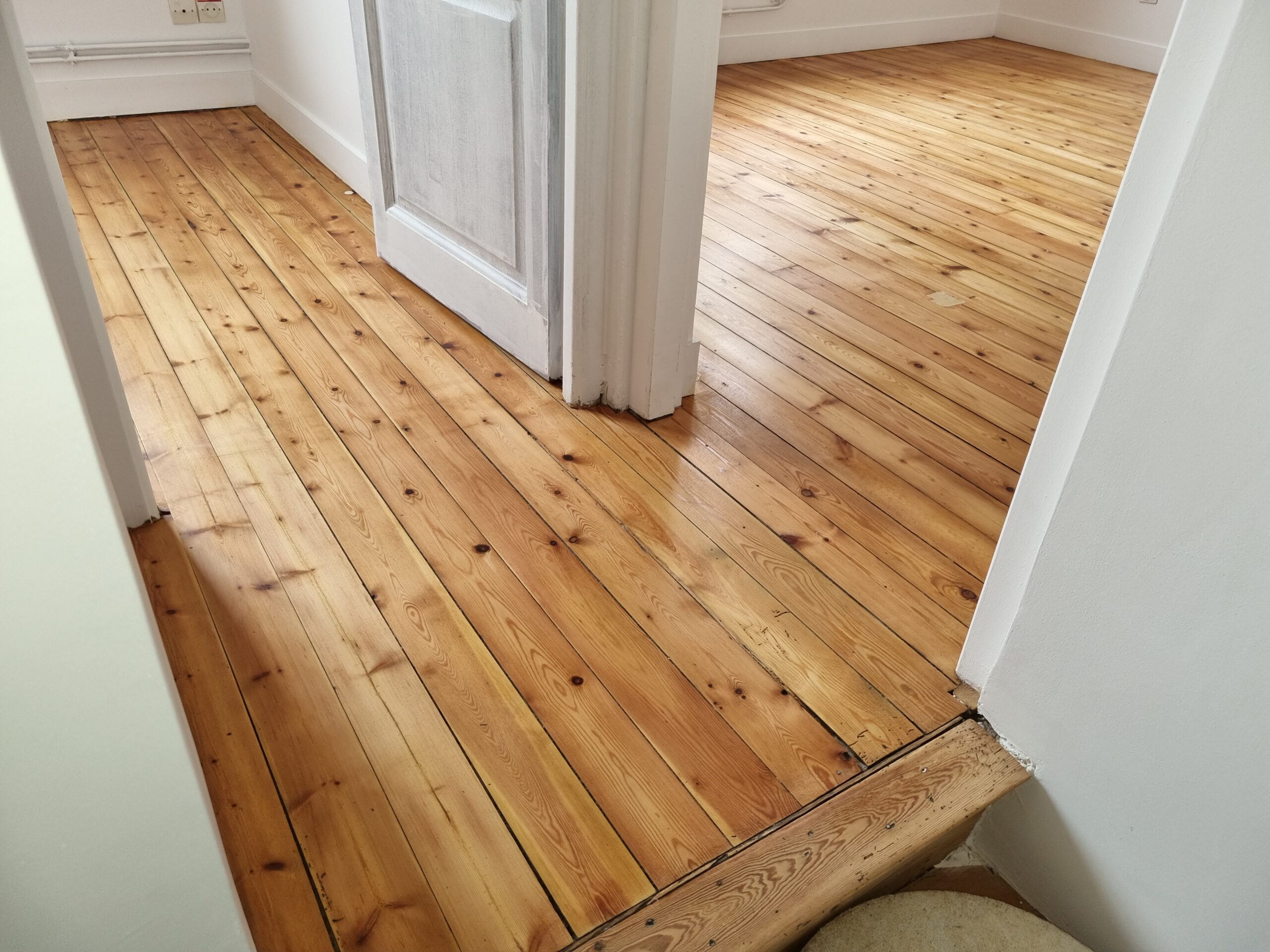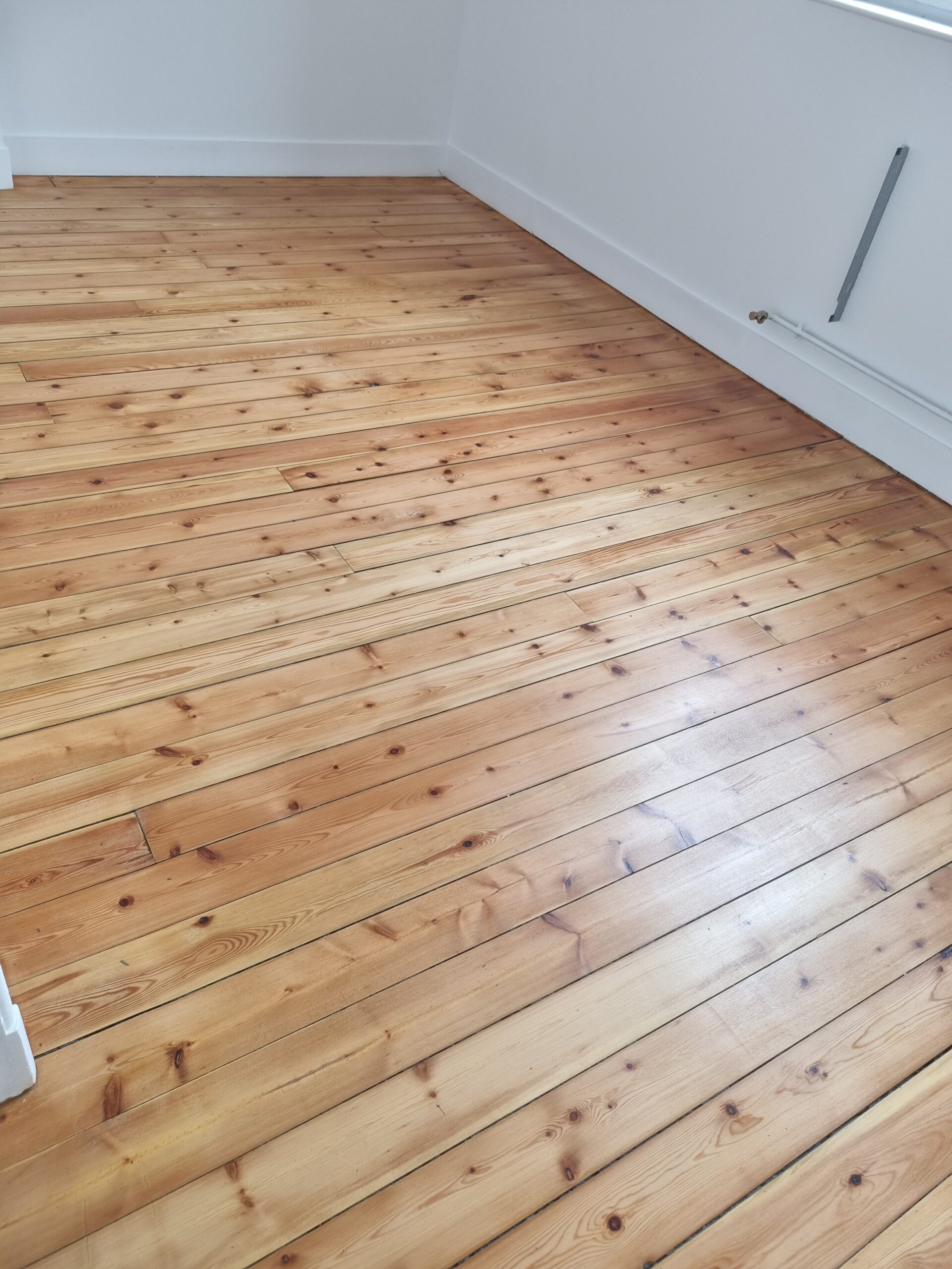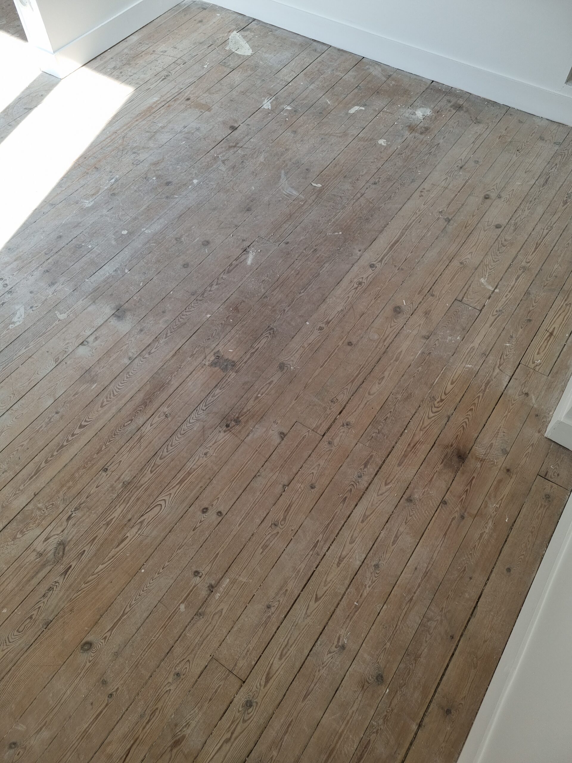Plancher en pin avant ponçage Plancher en pin fond dur solvanté (2)