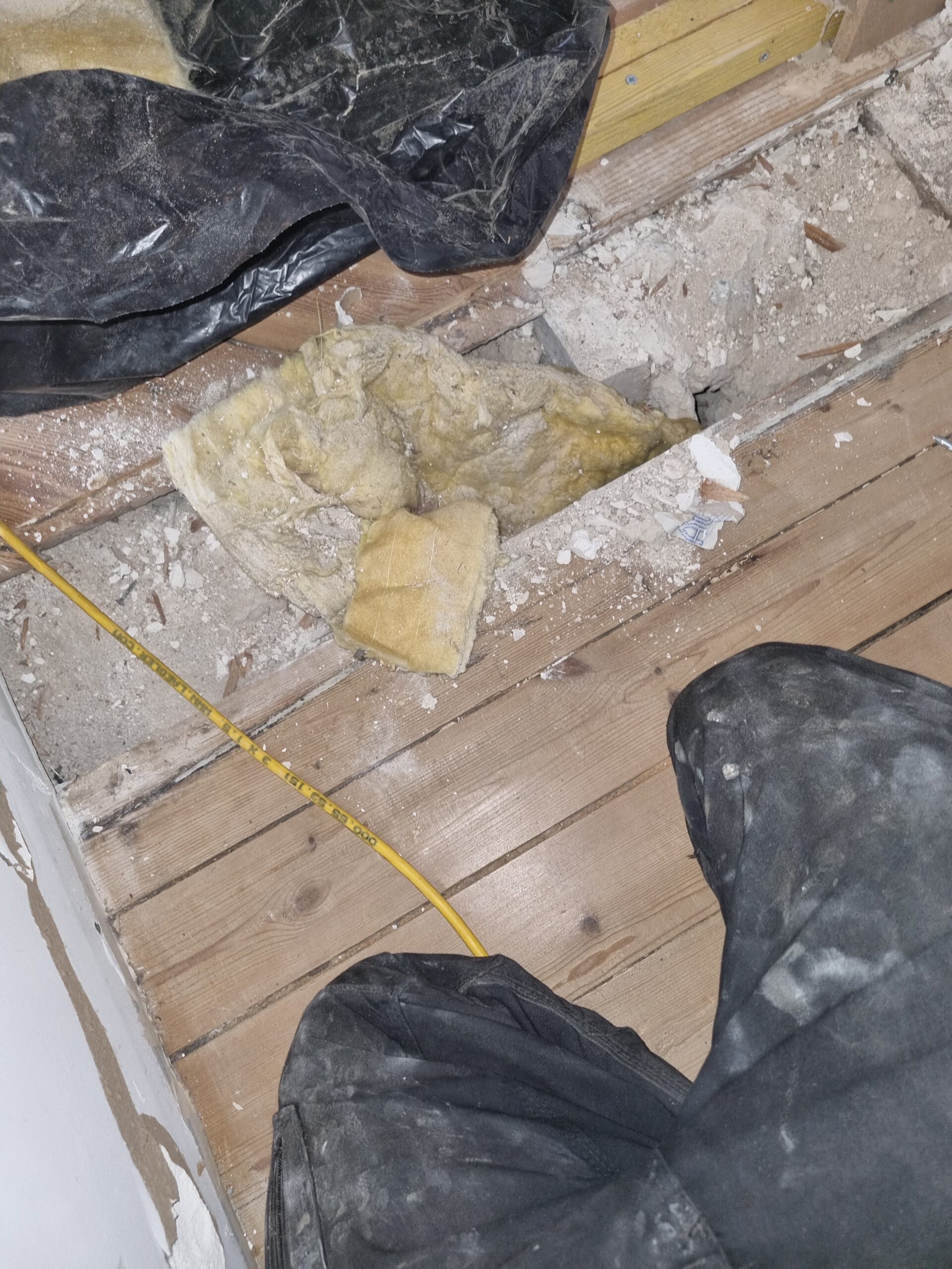 La planche recouvrait du vide rempli de multiples matériaux.