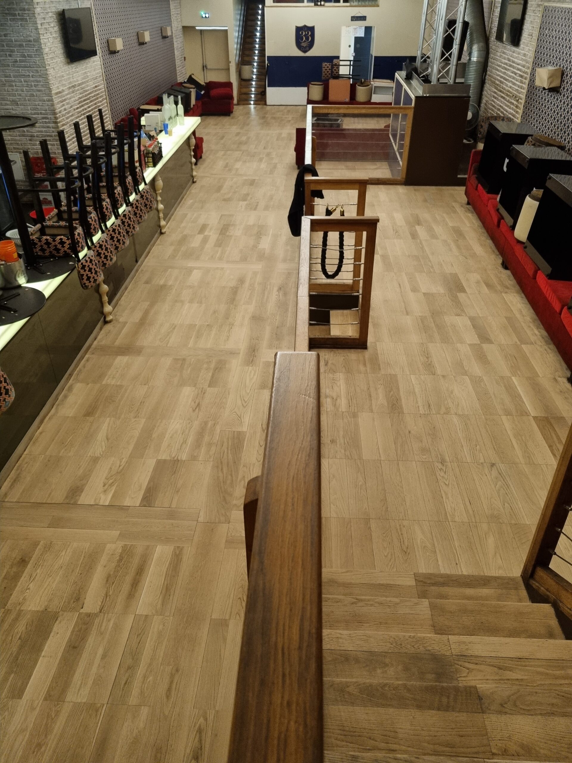 Le Club 33 nous a confié la rénovation intégrale du parquet en chêne de son établissement, Ce parquet était recouvert d’une teinte protectrice noire qui avec le temps, les passages intensifs et toutes les altérations subies au quotidien, avait besoin d’une remise en état complète. Le choix d’un ponçage puis d’une protection avec une mise en huile naturelle a été le plus adéquat. Un entretien semestriel est nécessaire pour garder sa bonne protection et sa chaleur naturelle.